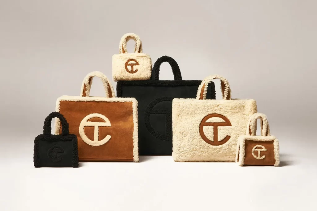 Telfar, the brand behind the famous “Bushwick Birkin,” teamed up with UGG to create a line that combines Telfar’s cult status with UGG’s signature comfort. The collaboration features cozy shearling bags and apparel, all with Telfar’s signature logo. This partnership brings a touch of luxury to UGG’s cozy vibes, making it a perfect fall/winter collection.