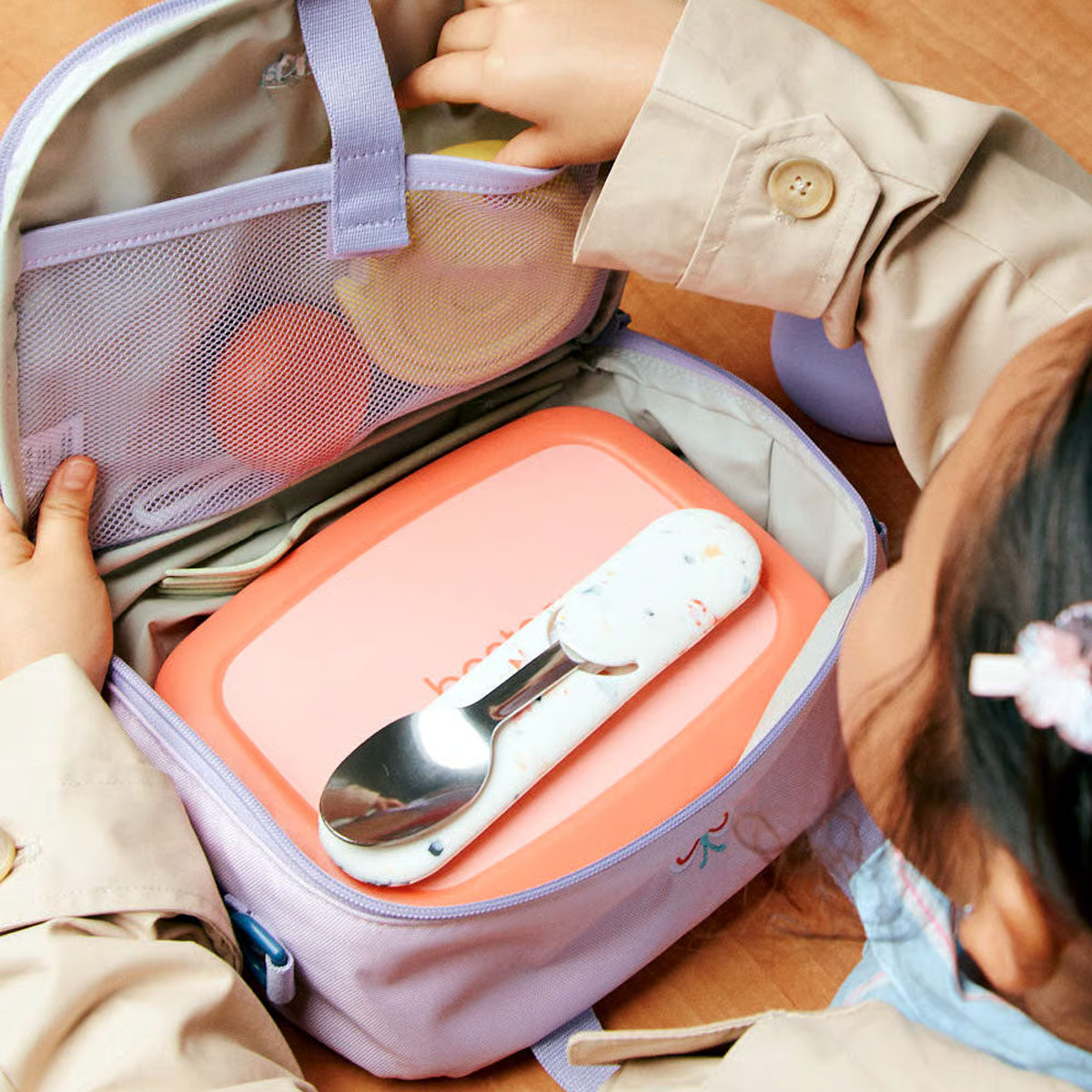 Everything wipes clean. Nothing feels flimsy. And because it all matches, there’s no guessing what goes with what when we’re rushing out the door. It’s easy to see from the get-go that it was clearly designed by people who have packed a school bag more than once.